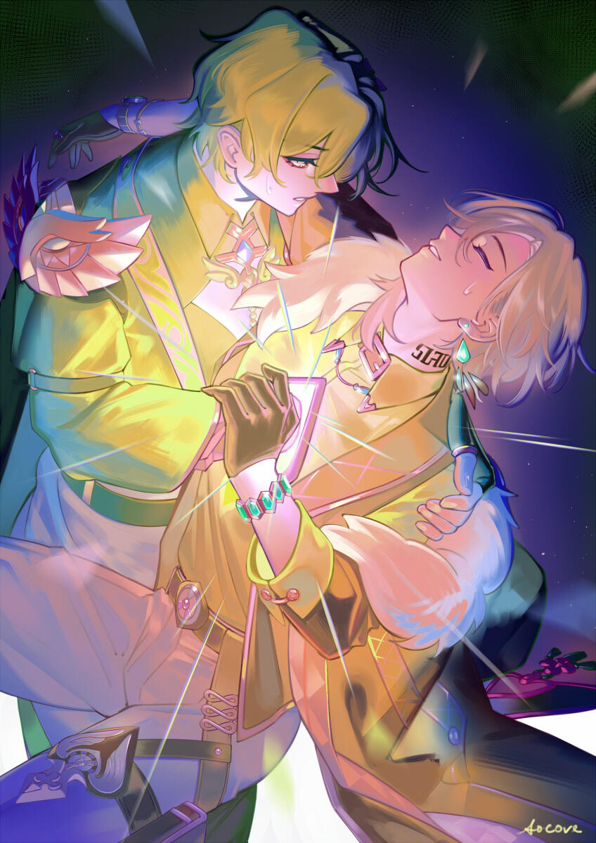 2025: Two single page illustrations for a Honkai: Star Rail fanzine, Fool's Gold: Aventurine Zine